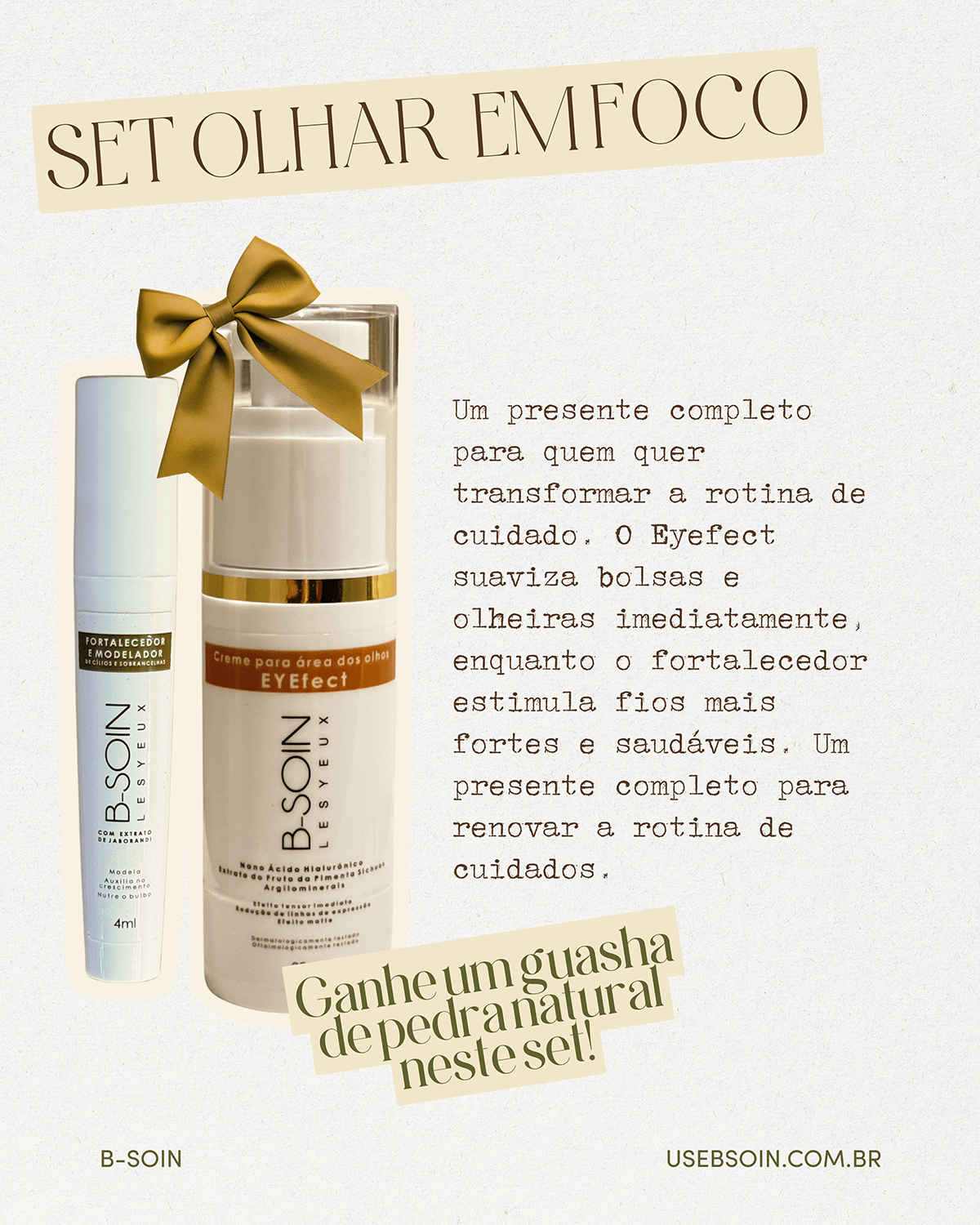 O Eyefect B-SOIN é um creme intensivo para a área dos olhos que combate bolsas, olheiras e sinais de envelhecimento com uma fórmula rica em peptídeos, ácido hialurônico e extratos botânicos.
